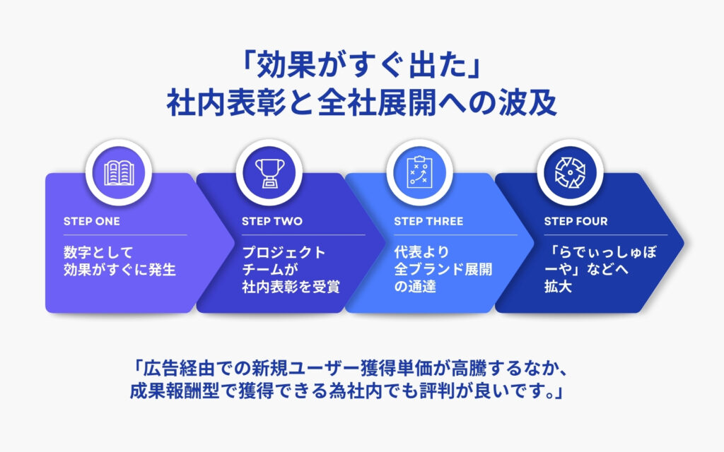 クイックな導入から即時性の高い成果に繋げ、その成功体験をスピーディに他ブランドへ横展開することで、成功のインパクトを全社規模に拡大させました。